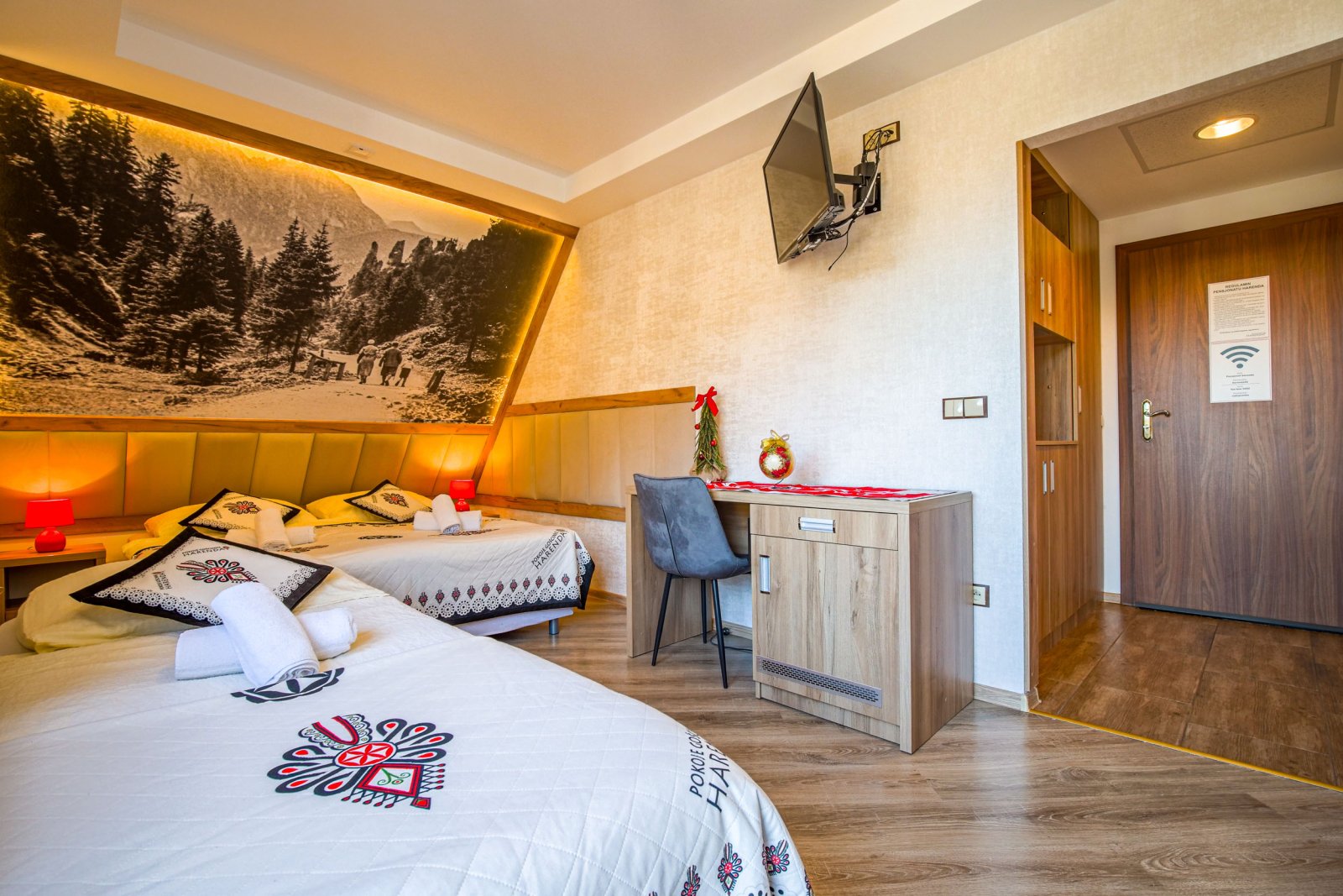 Pokój 3 osobowy. Pokój posiada łazienkę - suszarka, ręczniki, zestaw kosmetyków. W pokoju lodówka, bezpłatne WIFI, telewizor. Pokój dysponuje zestawem do kawy i herbaty. Woda mineralna, herbata, kawa. Pokój posiada balkon.