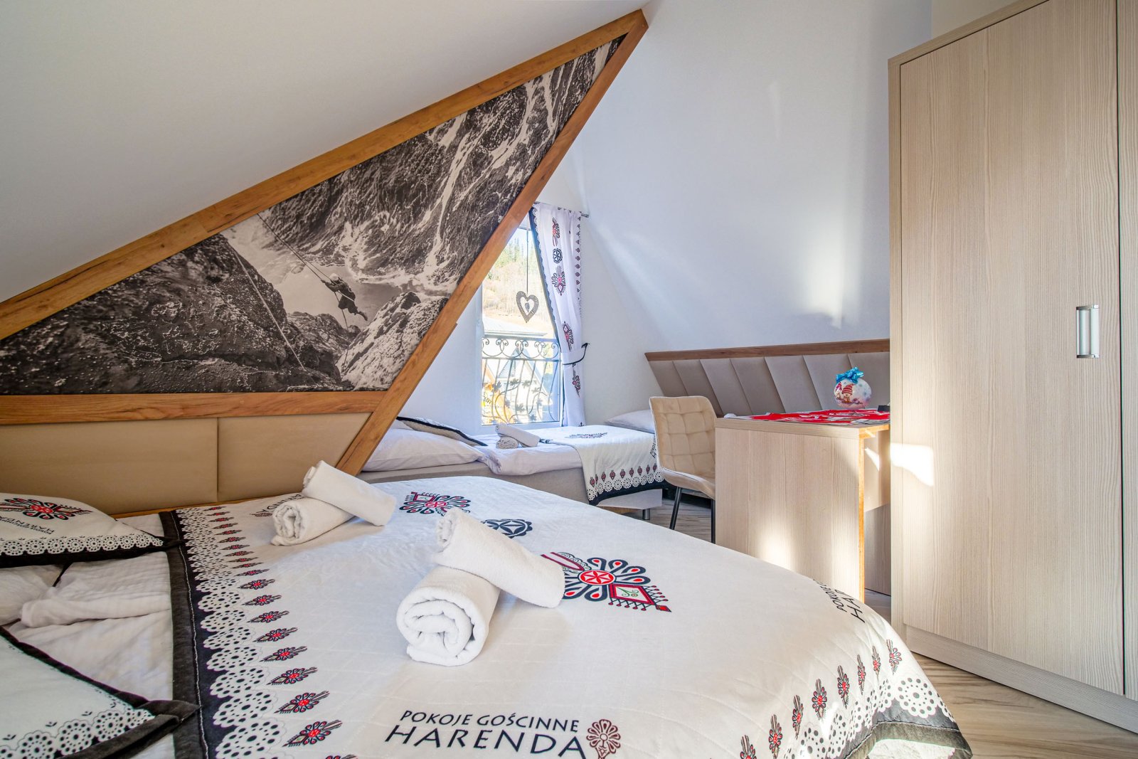 Z okien rozciąga się piękny widok na góry (Giewont) i wyciąg Harenda.