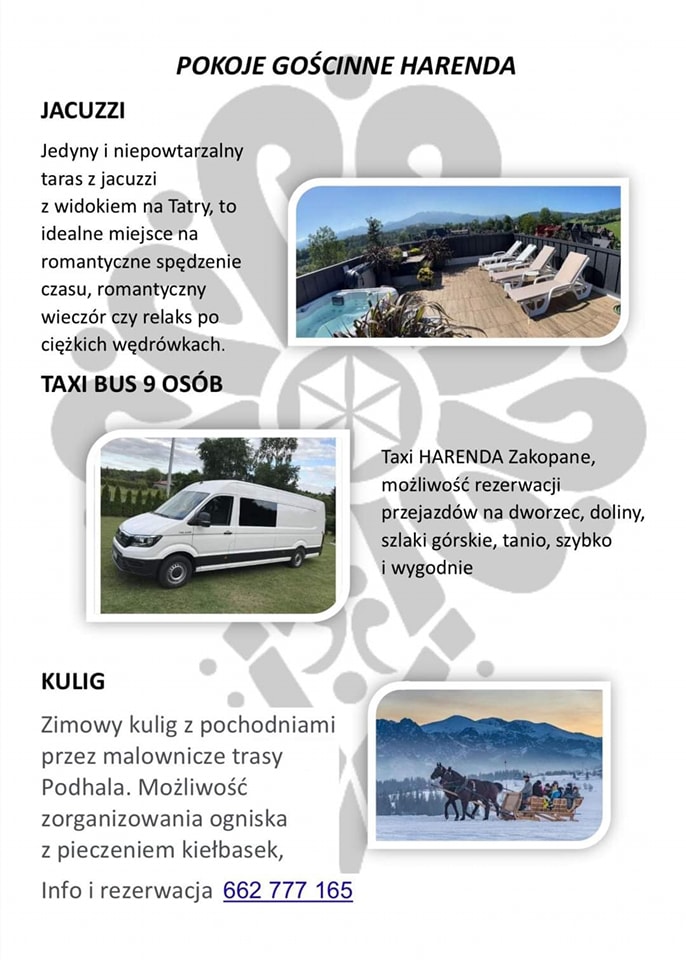 Główną atrakcją naszego obiektu jest jacuzzi umiejscowione na dachu budynku z przepięknym widokiem na panoramę Tatr. Jedyne takie miejsce w okolicy