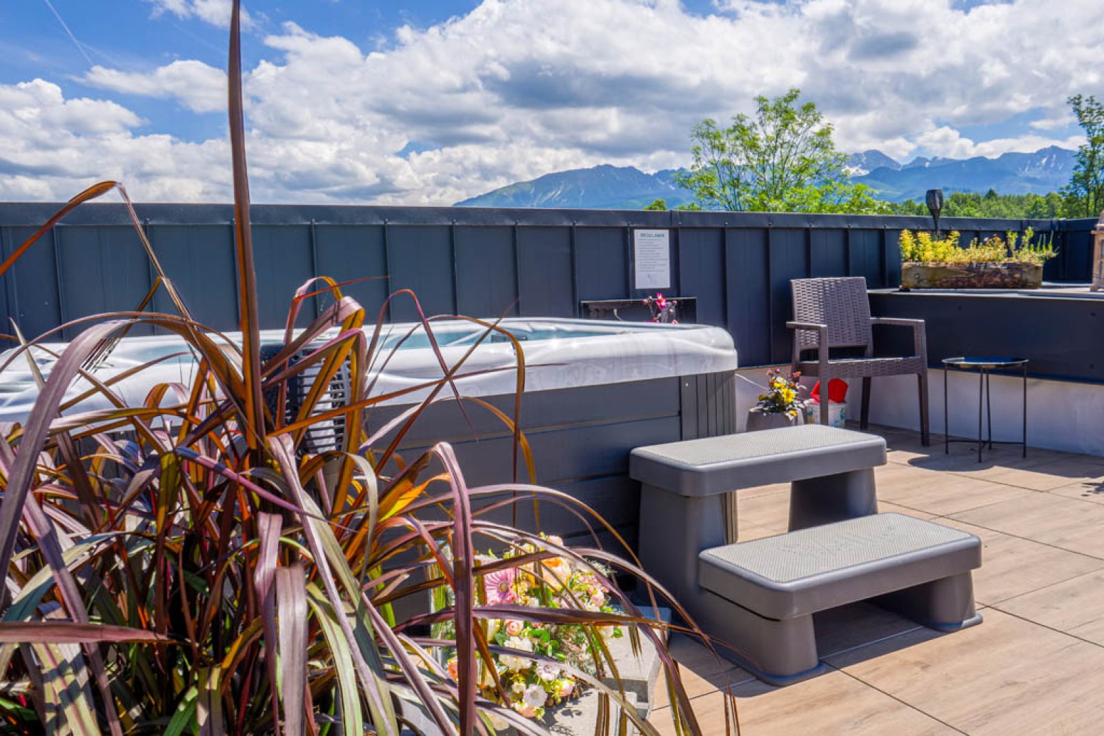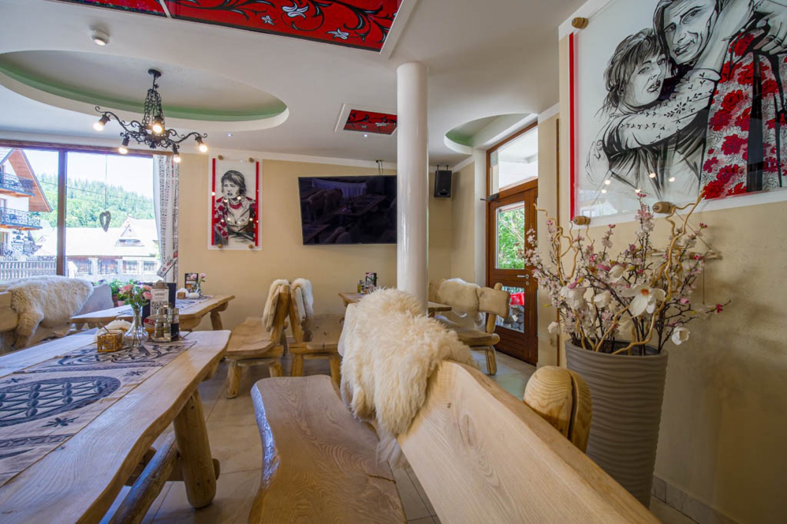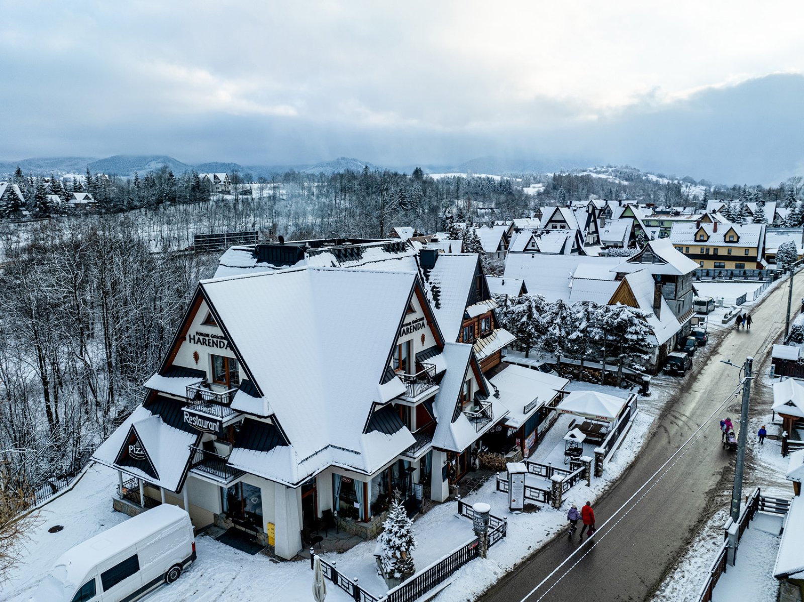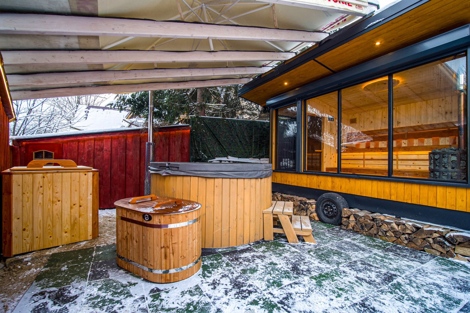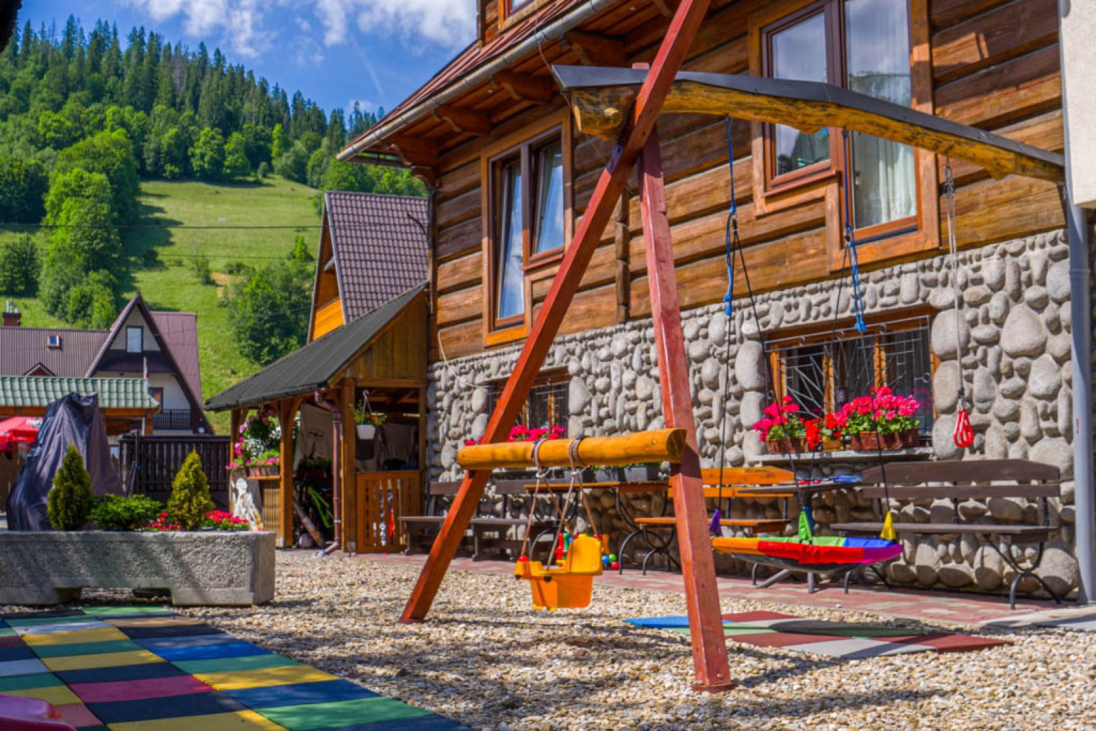 Zapraszamy do nowego, pięknego pensjonatu z widokiem na góry! Nasz pensjonat usytuowany jest obok wyciągu narciarskiego Harenda, nad kojąco szumiącym potokiem Zakopianka. Przygotowaliśmy dla Państwa pokoje 2-, 3- oraz 5-osobowe. Przed budynkiem mamy piękny ogród z placem zabaw dla dzieci i miejscem na grilla. Organizujemy dla naszych Gości imprezy okolicznościowe, ogniska, pieczenie barana, a w zimie kuligi. Podczas sezonu zimowego w obiekcie jest dostępna wypożyczalnia narciarska. Na dachu naszego domu znajduje się jacuzzi z widokiem na wspaniałą panoramę Tatr. Możliwość zakupienia pakietu. Na terenie obiektu znajduje się również sauna, ruska baniarussian tube oraz balia do morsowania Ice tube.