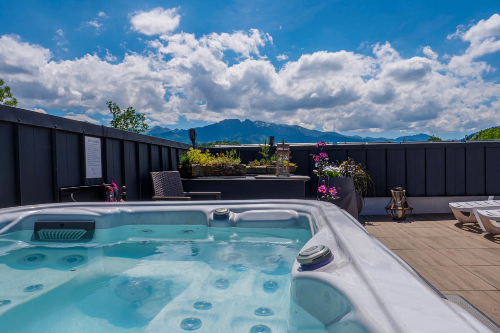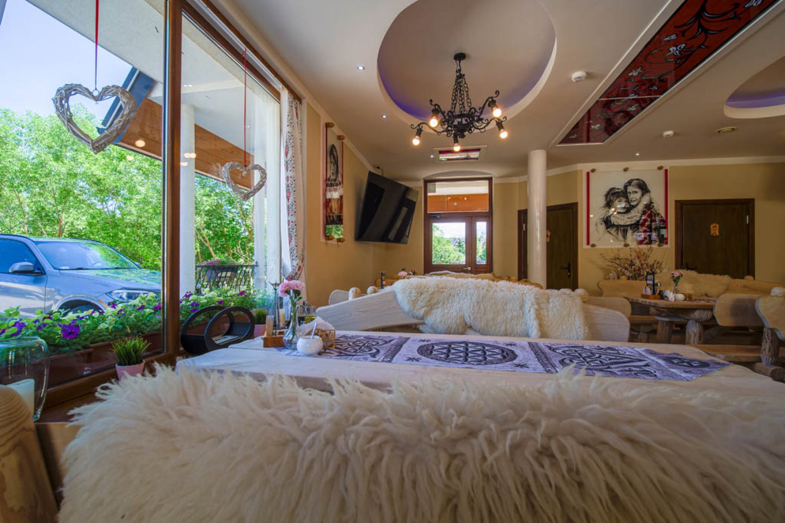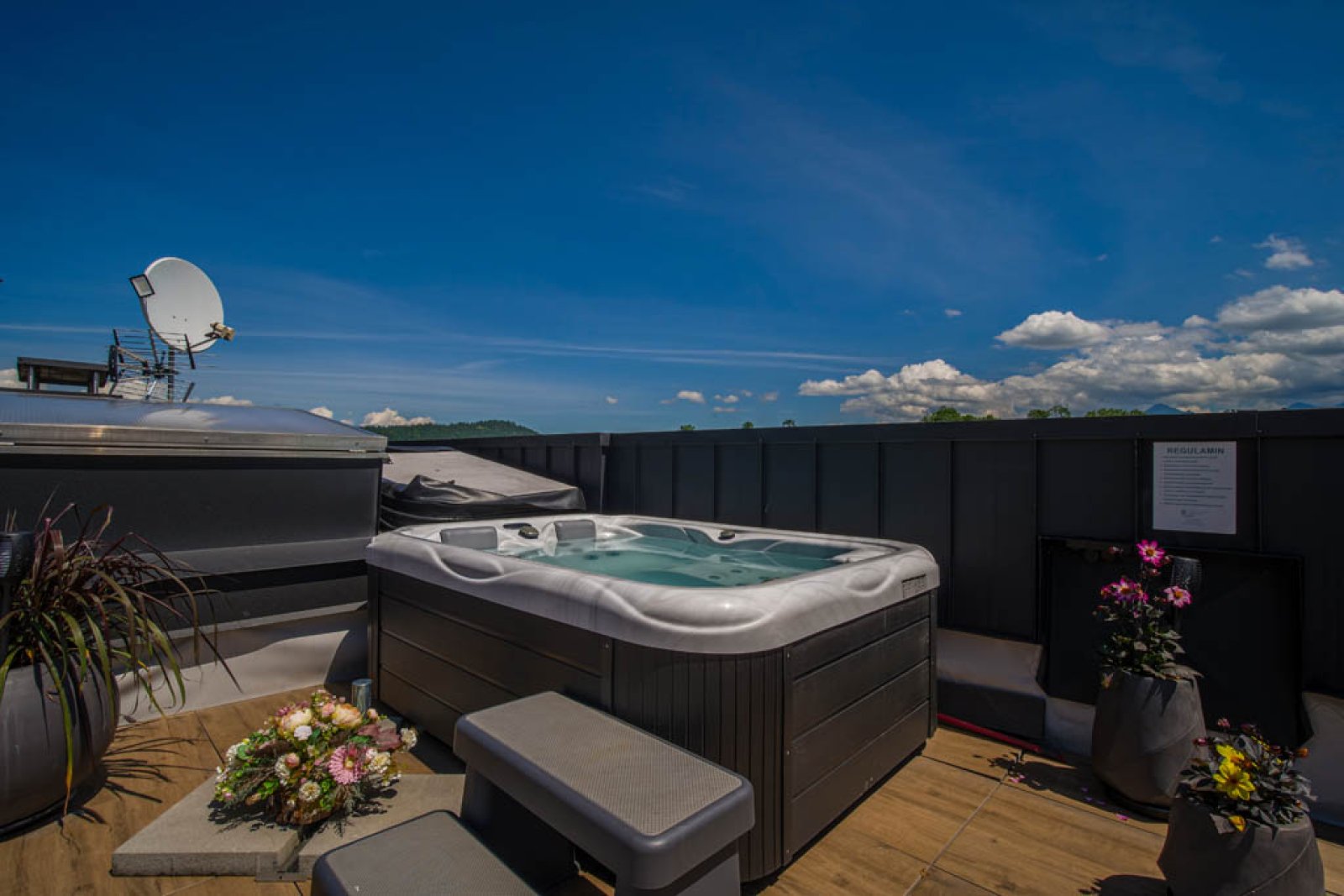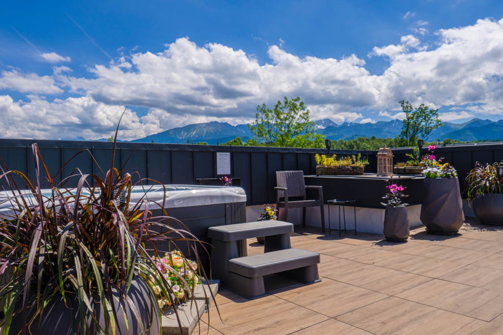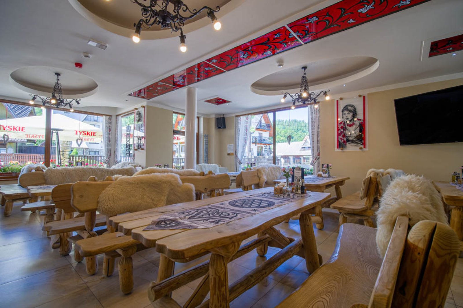 Zapraszamy do nowego, pięknego pensjonatu z widokiem na góry! Nasz pensjonat usytuowany jest obok wyciągu narciarskiego Harenda, nad kojąco szumiącym potokiem Zakopianka. Przygotowaliśmy dla Państwa pokoje 2-, 3- oraz 5-osobowe. Przed budynkiem mamy piękny ogród z placem zabaw dla dzieci i miejscem na grilla. Organizujemy dla naszych Gości imprezy okolicznościowe, ogniska, pieczenie barana, a w zimie kuligi. Podczas sezonu zimowego w obiekcie jest dostępna wypożyczalnia narciarska. Na dachu naszego domu znajduje się jacuzzi z widokiem na wspaniałą panoramę Tatr. Możliwość zakupienia pakietu. Na terenie obiektu znajduje się również sauna, ruska baniarussian tube oraz balia do morsowania Ice tube.