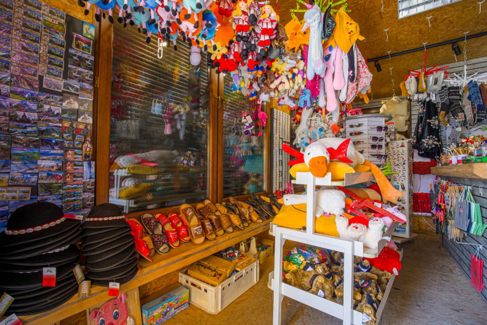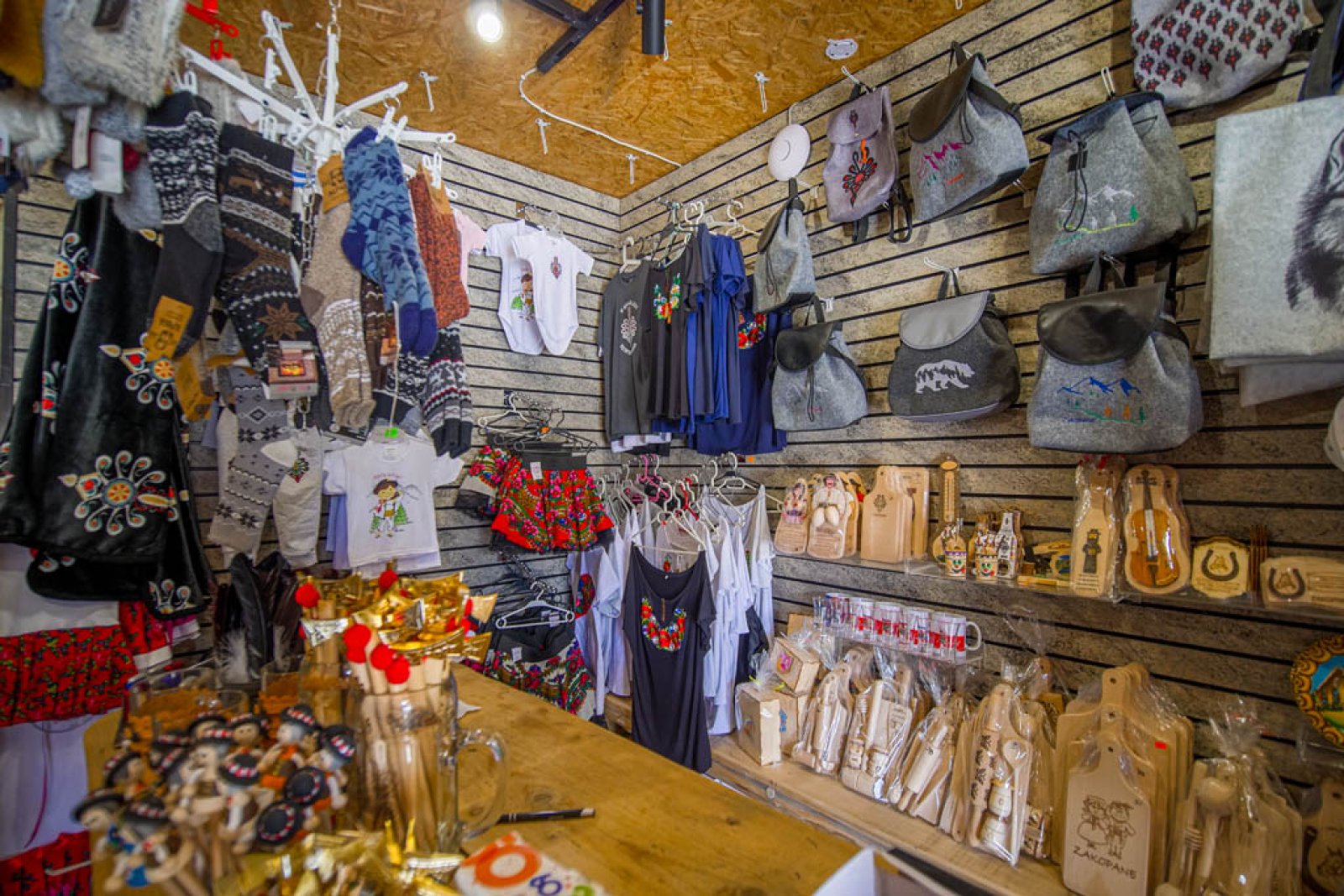 Na terenie obiektu znajduje się sklepik z pamiątkami regionalnymi i zabawkami. Posiadamy również punkt sprzedaży oscypków oraz przetworów regionalnych z zaprzyjaźnionej bacówki.