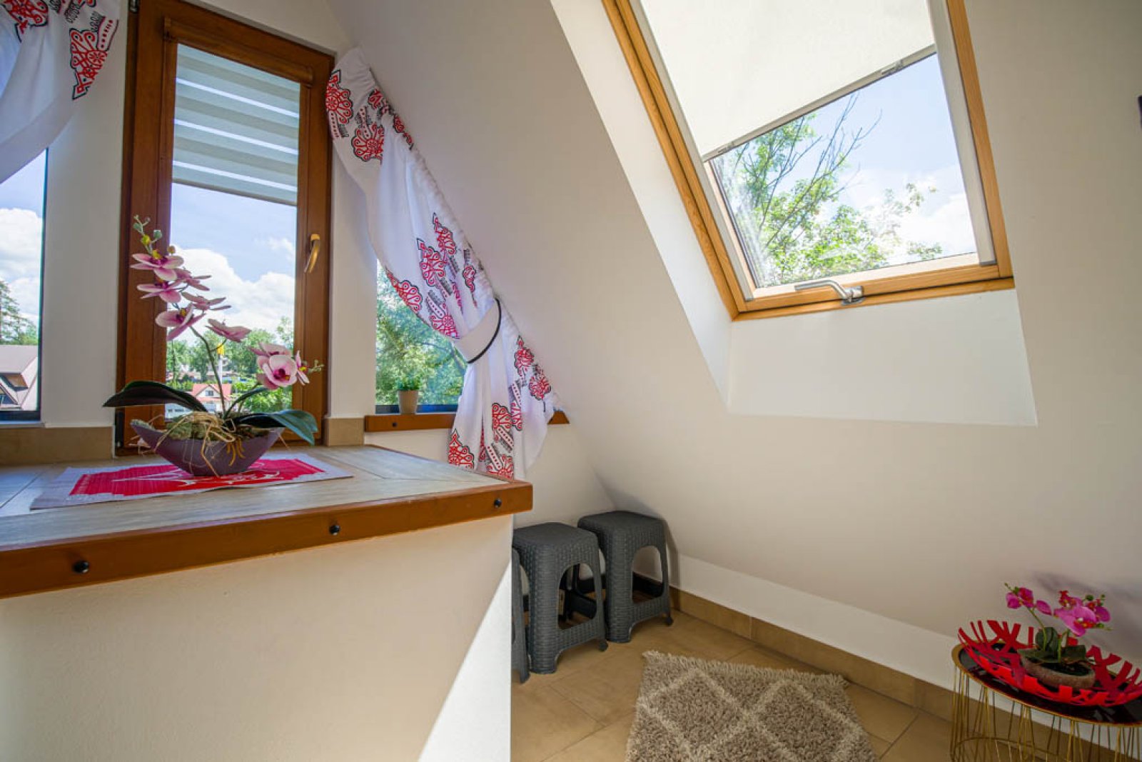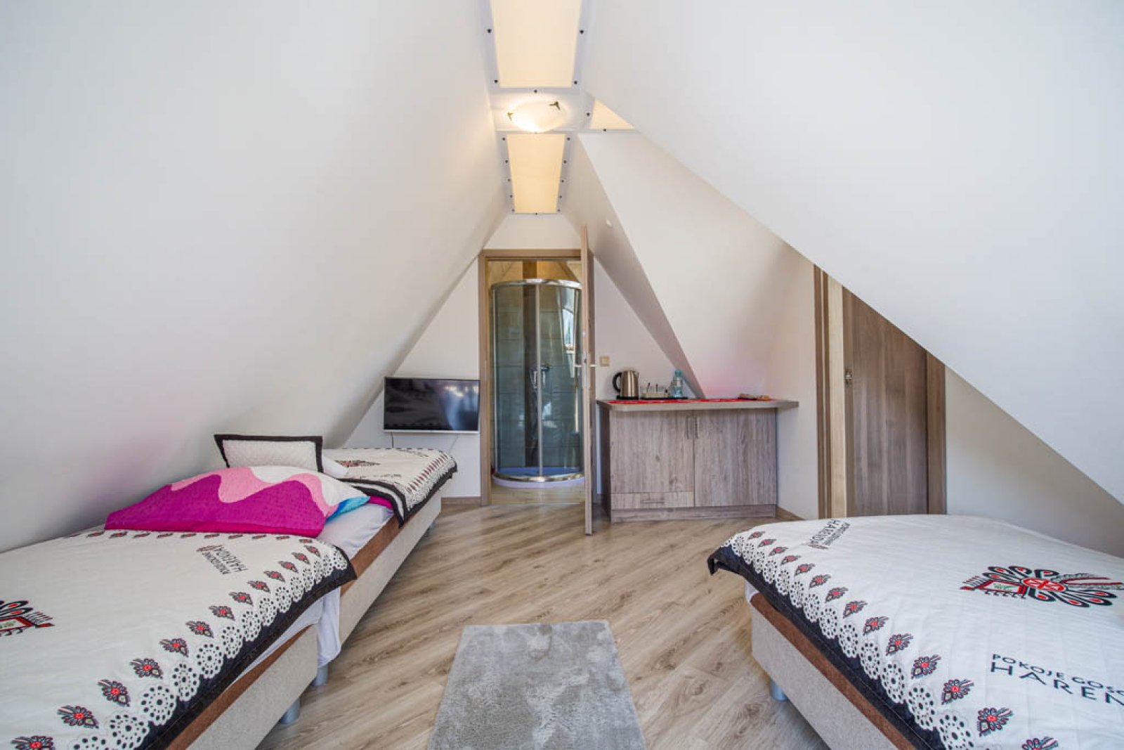 Balkon z widokiem na góry oraz na stok - wyciąg narciarski Harenda.