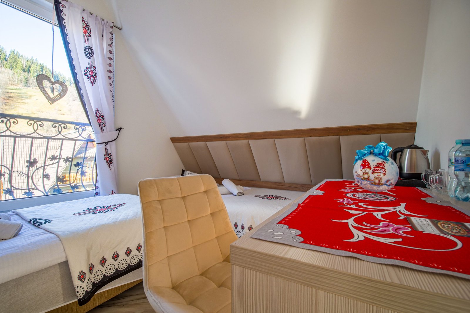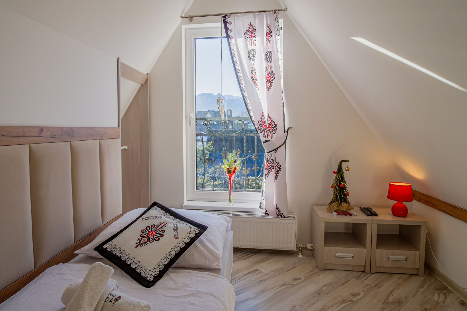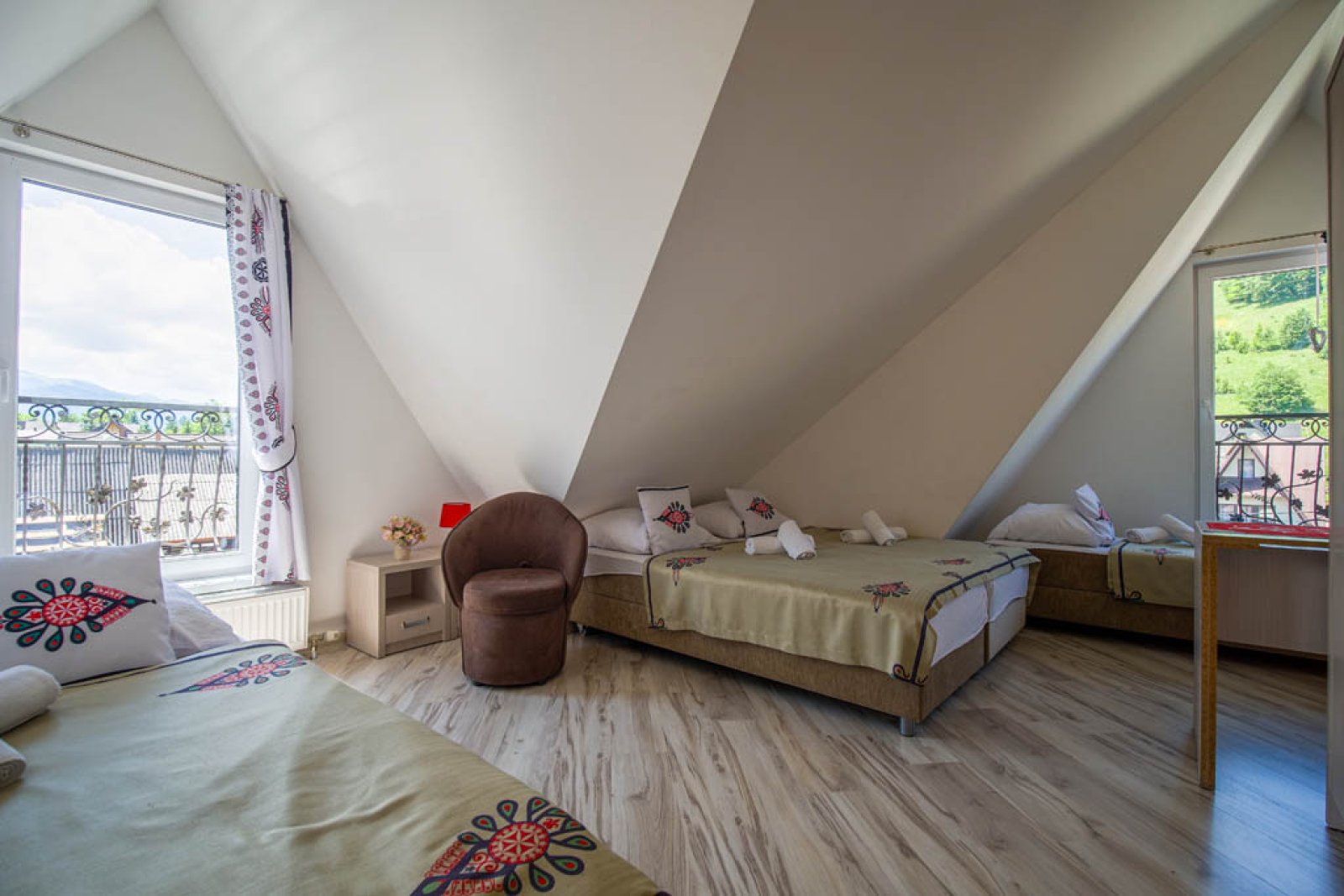 Z okien rozciąga się piękny widok na góry (Giewont) i wyciąg Harenda.