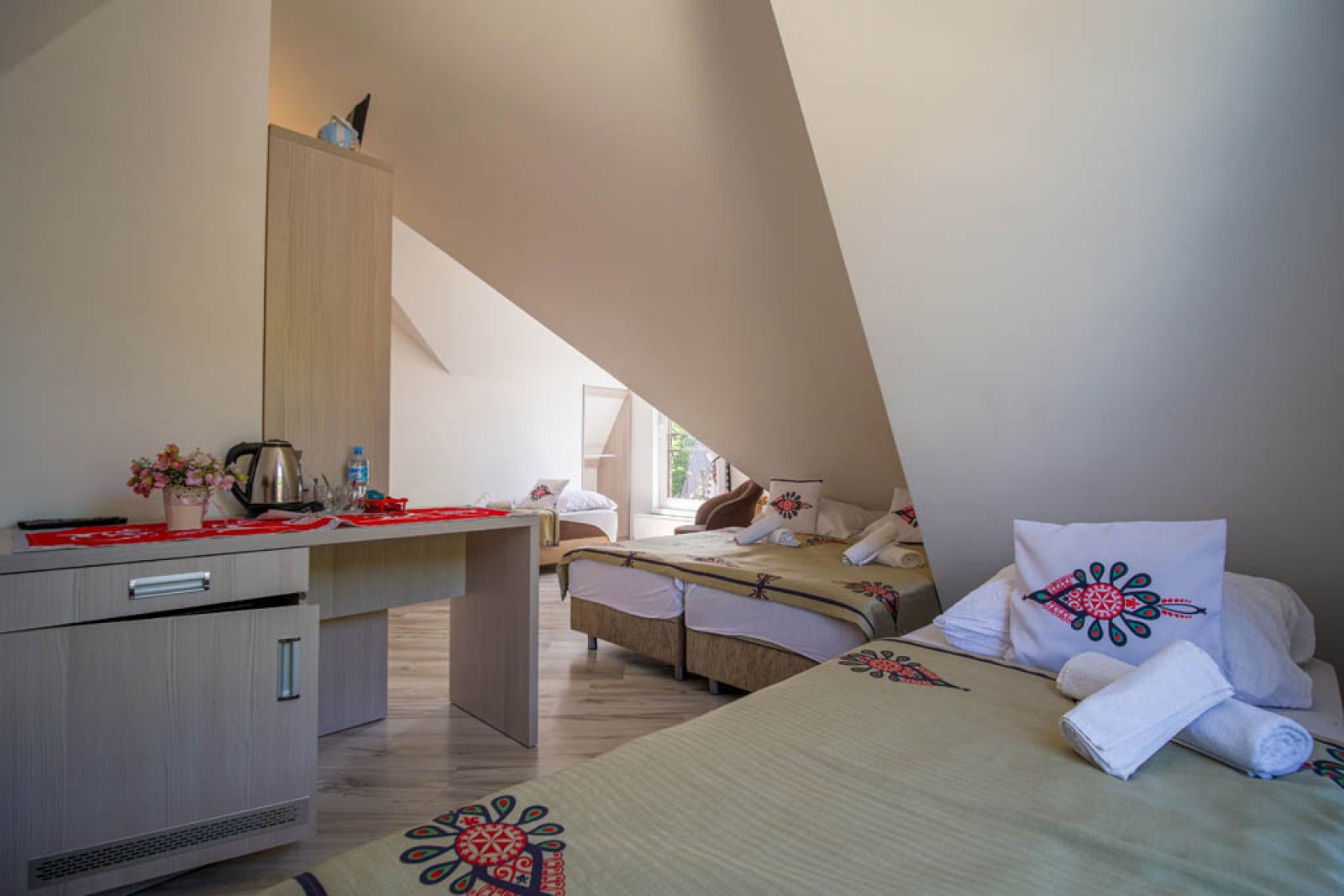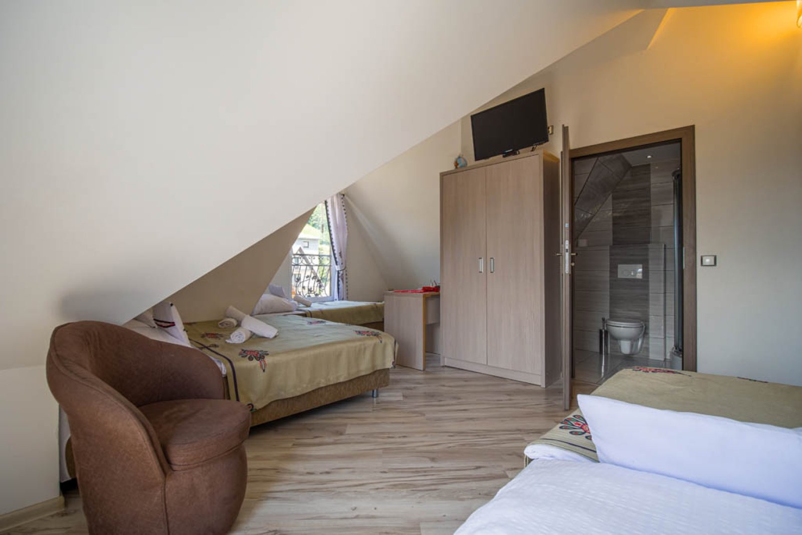 Pokój 5 osobowy. Pokój posiada łazienkę - suszarka, ręczniki, zestaw kosmetyków.